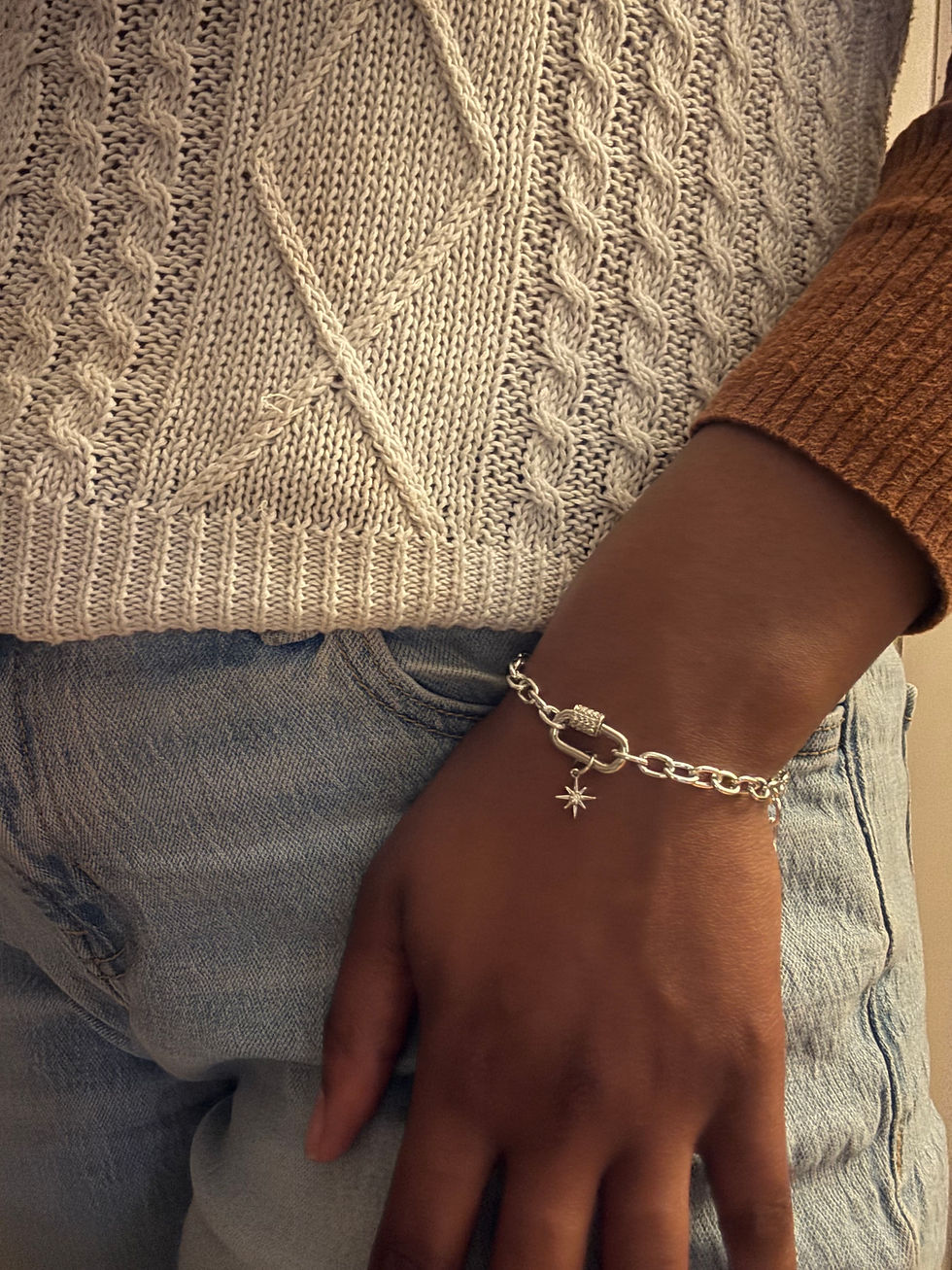 Silver Chain Bracelet - Silver Carabiner With a Star